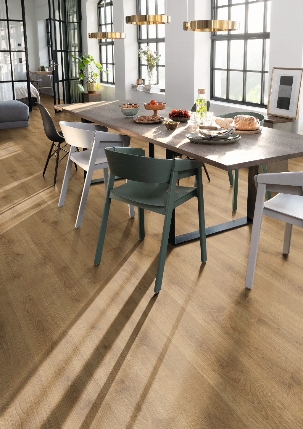 Natural North Oak is a very natural oak decor in a warm natural colour. The look is simple and the colour warm brown. This gives the room an authentic and cosy floor surface that can be combined with light colours and woods.