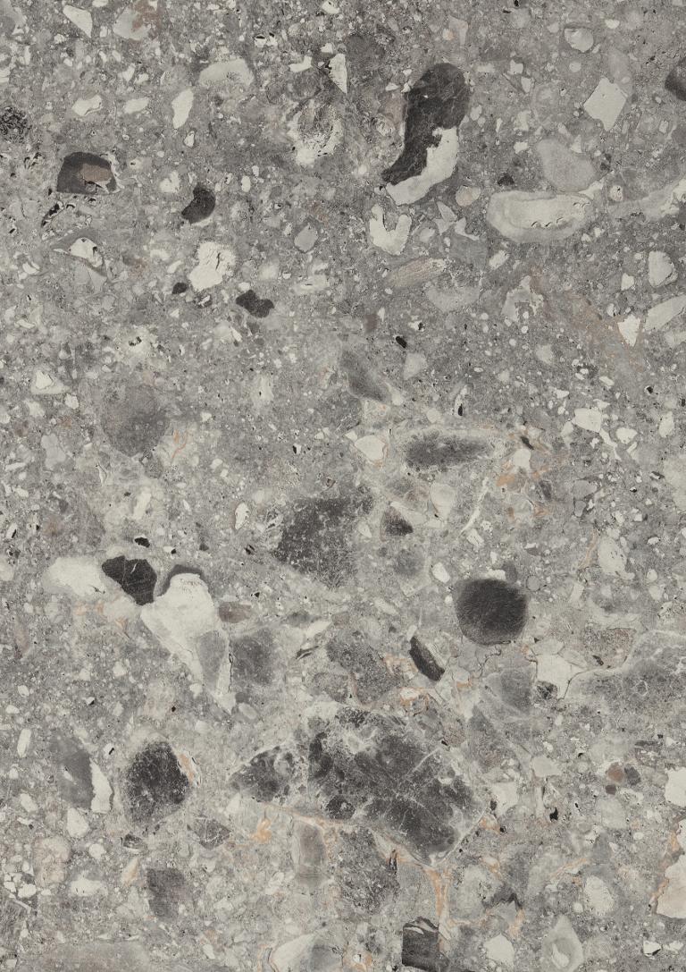 The F021 Grey Triestino Terrazzo shows a natural, slightly larger version, which, thanks to its grey colour components, can be combined very well with grey uni colours, as well as woodgrain decors, such as walnut or light chestnut. The ST75 Mineral Satin surface texture gives the decor a velvety feel, but visually it adds a natural irregularity to it. In the EGGER Interior Match, this decor is available with the same decor as the ELF021 laminate flooring from the EGGER Flooring Collection.
