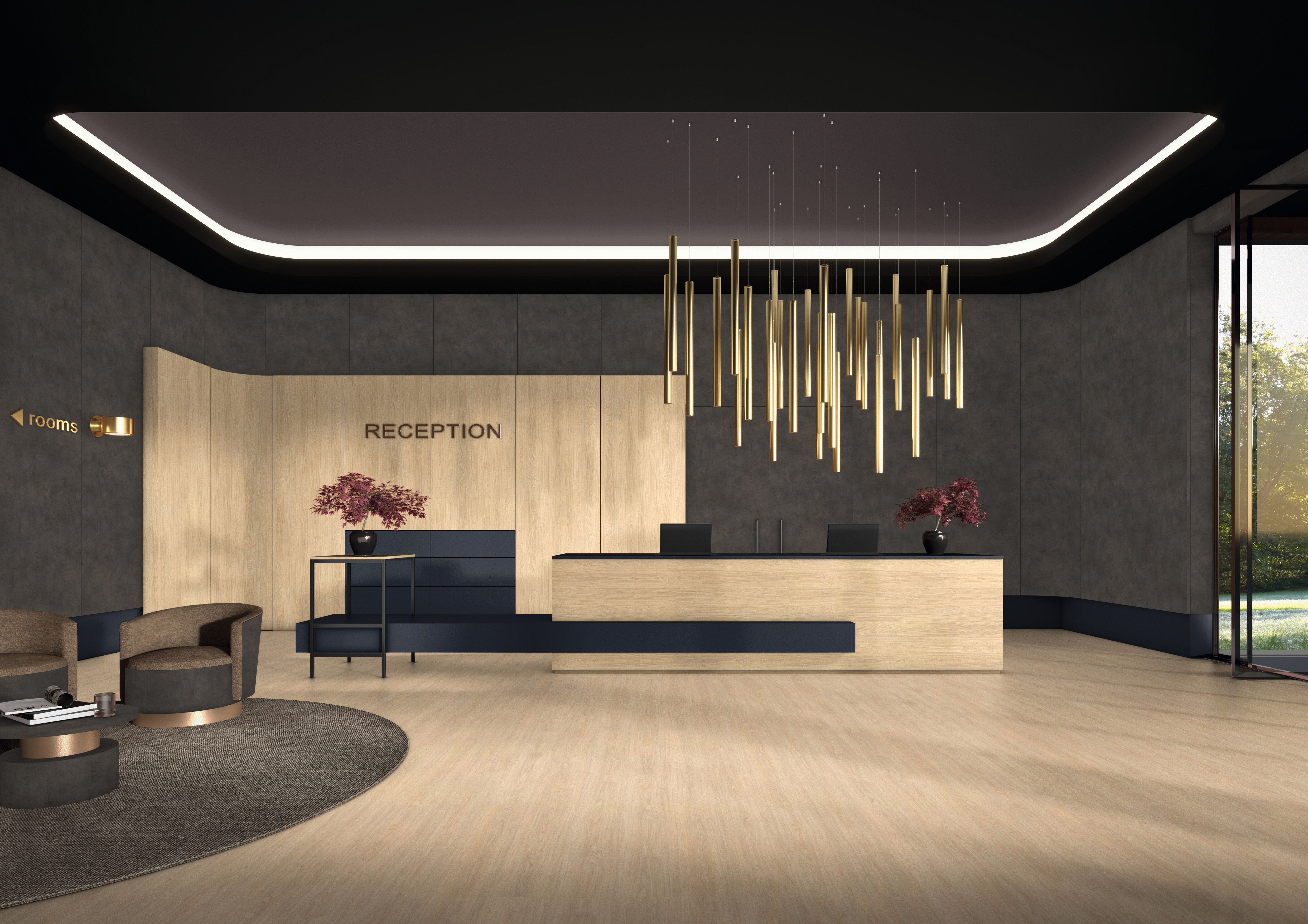 El U599 Azul índigo es un azul casi negro que forma parte de la tendencia de los diseños casi negros. En mobiliario proporciona un contraste muy elegante con los diseños madera marrón oscuro, como el nogal, y se suele usar en mobiliario de salas de estar. Se puede crear un aspecto más frío con materiales como el hormigón o el acero. Estas propiedades ópticas reciben el acabado háptico perfecto con el laqueado PM PerfectSense Premium Matt. Además, el uso de un soporte de MDF o laminado como material de base crea una calidad especialmente mate y una exclusiva uniformidad en la superficie. Por su parte, la propiedad antihuellas abre posibilidades de aplicación adicionales para este unicolor mate, incluso en superficies expuestas a más tensión.