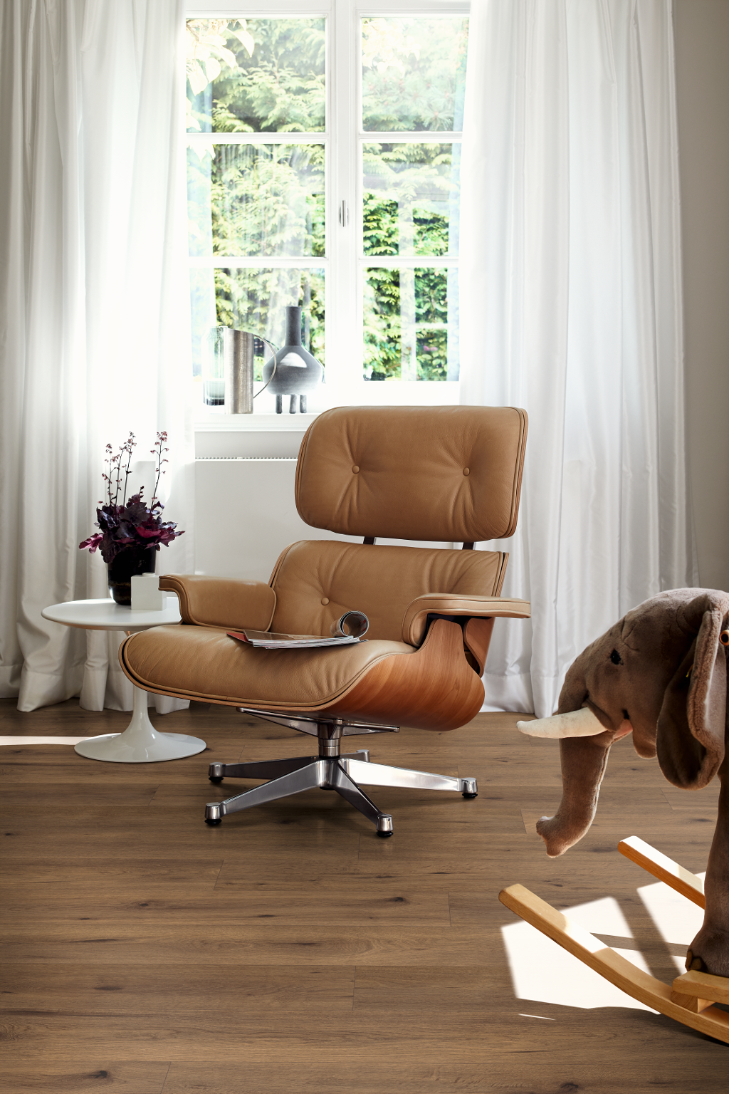 - À la fois robuste et très résistante à lʼusure, la surface protège le sol contre les rayures, les rayons UV et les défis de la vie quotidienne.