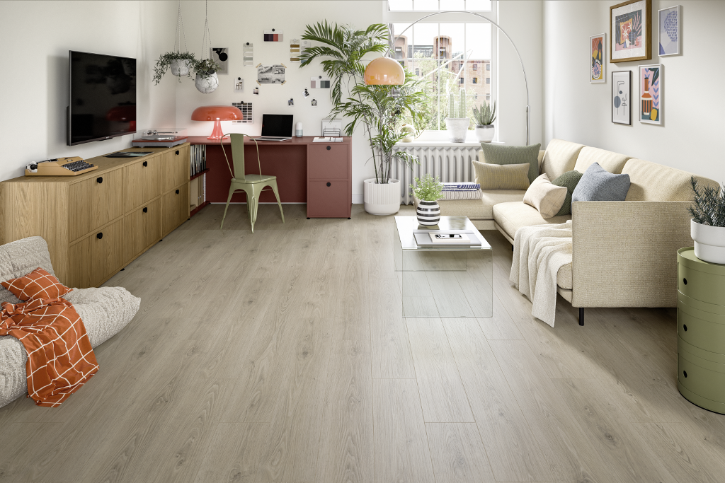 NatureSense Aqua 自在系列 24h+ 强化木地板是一款真正的全能型地板,结合防水锁扣,使其可用于浴室和厨房。